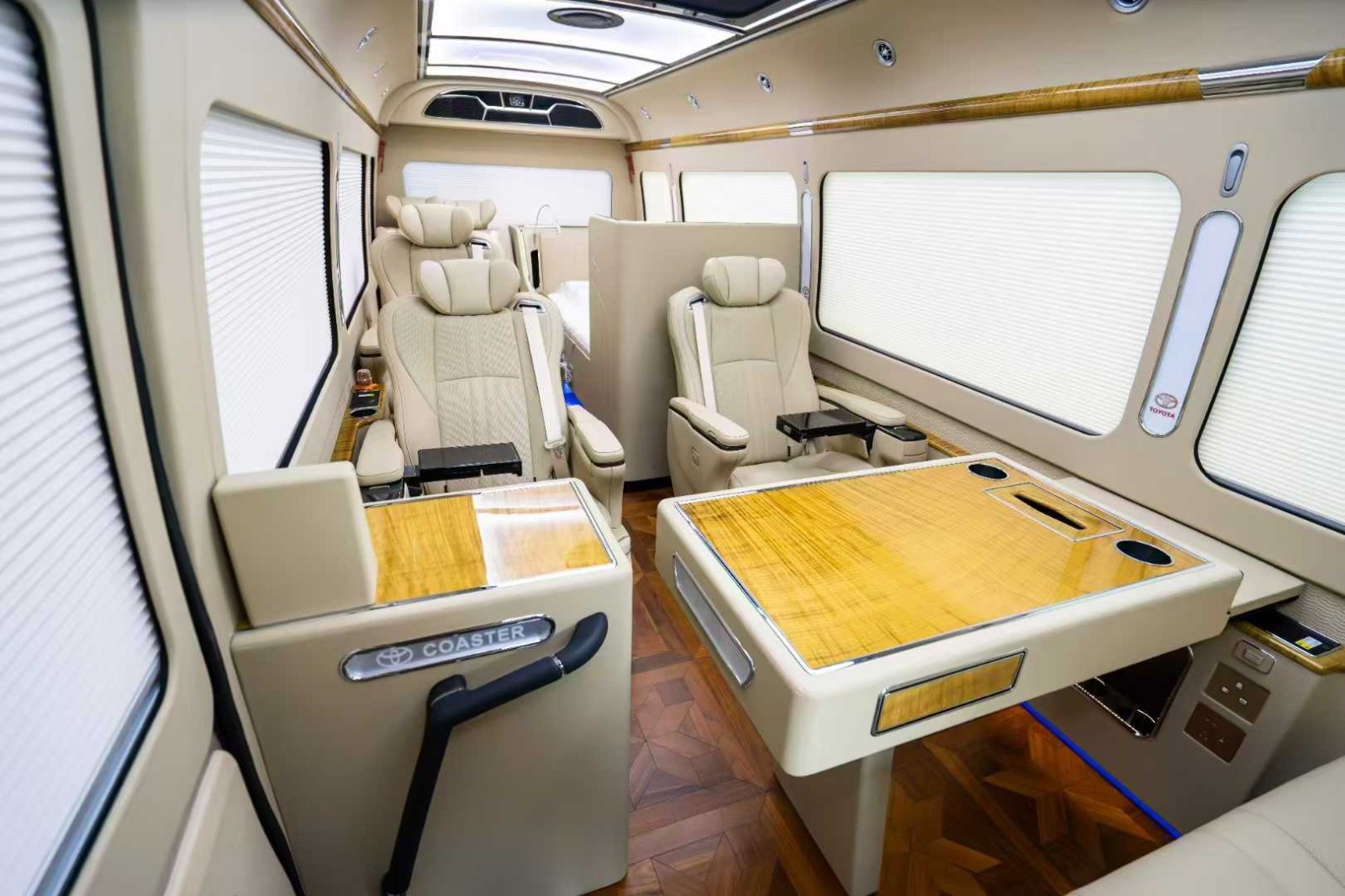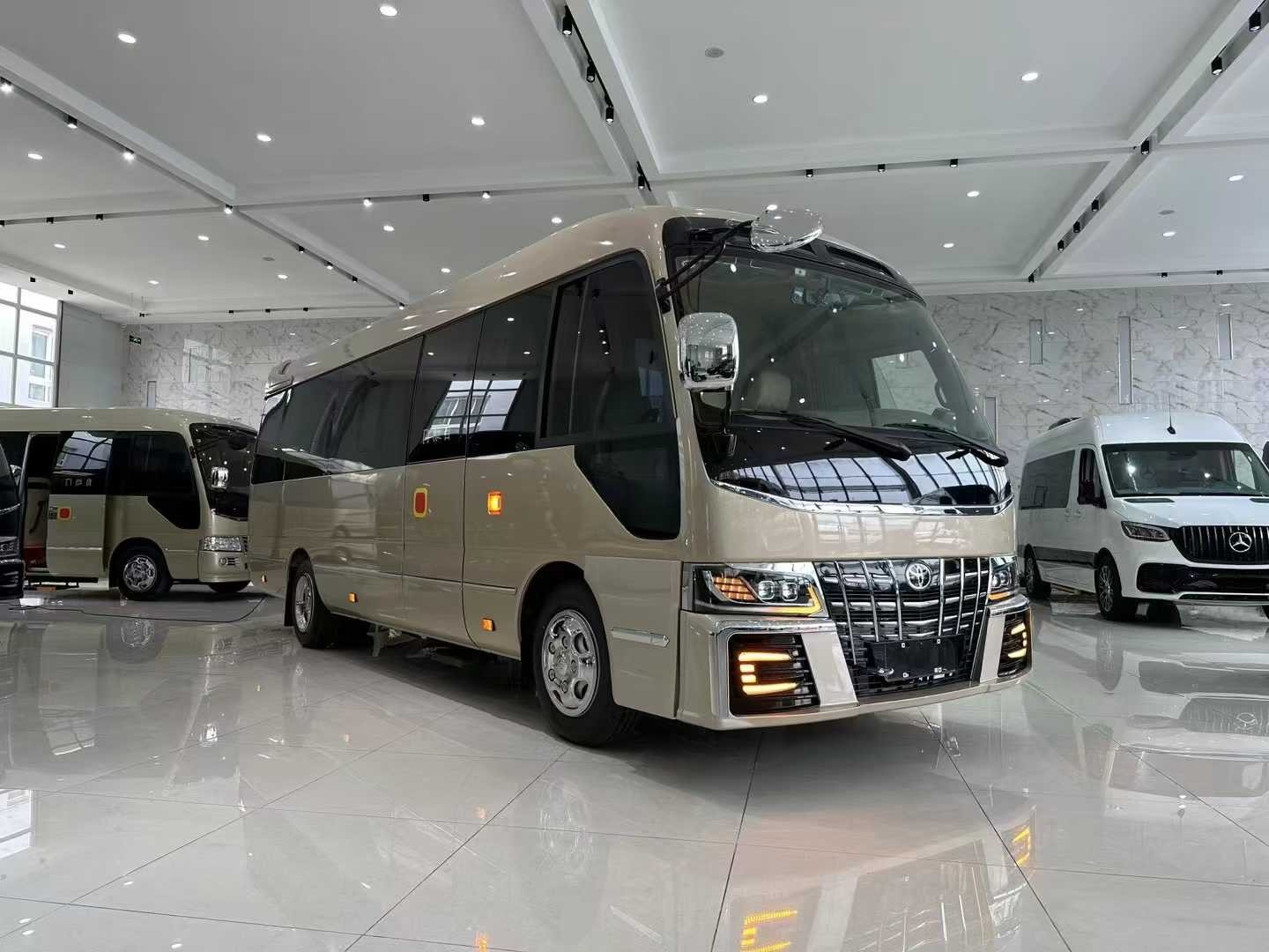 丰田柯斯达11座/12座报价装备一览表,考斯特车身长度为7.005米,身宽度为2.040米,车身高度为2.774米,巨大的车身为咱们供给了宽阔舒适大的乘驾空间。,丰田COASTER柯斯达超VIP至尊高端定制版 一路享用 打造最“舒畅”座椅 很多人都知道,一些奢华商务车车型的座椅没有过多的着重舒适性,往往只选用“真皮处理”,在客户体会上并不是很好。,丰田考斯特考斯在外观的规划也有很多种计划,镀铬的前格栅以及以防蹭线、车头车尾添加印象设备,提高了考斯特行车安全。