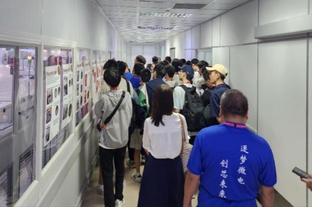 同学们参观生产车间和企业文化走廊,亲眼目睹了芯片制造中的关键设备和流程,从超净工作服到扫描电镜,从晶圆搬运机器人到黄光区,每一个环节都体现了生产工作的严谨性。